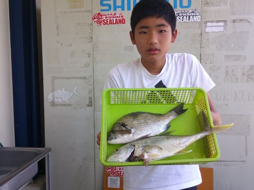 名前:山田 蕉輝さん魚種:ロウニンアジ ミナミクロダイ 全長:39.5p 31p 重量:0.74s 0.48s 釣場:名護 検量店:シーランドうるま店 |