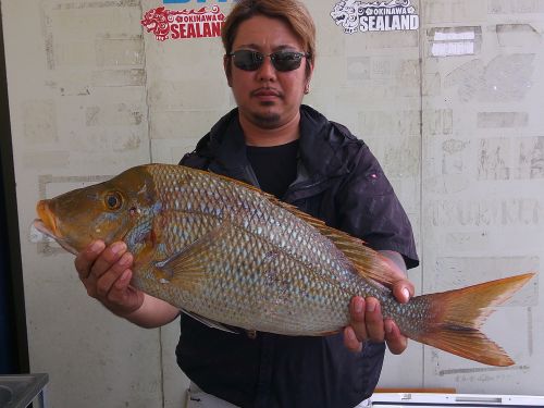 名前:島袋 琉由さん魚種:トカジャー 全長:47p 重量:1.5kg 釣場:本部(北谷店検量) |