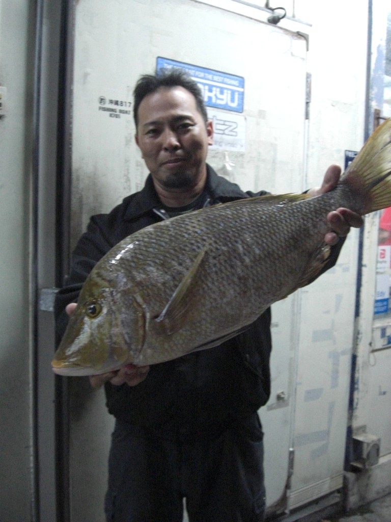 名前:大城 康伸さん 魚種:ガラサー 全長:46.7p 重量:2.05s 釣場:安謝(那覇店検量) |