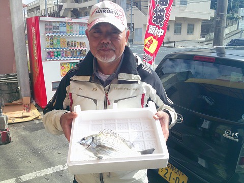 名前:比嘉 直光さん 魚種:ミナミクロダイ 全長:30.4p 重量:0.35s 釣場:屋我地(那覇店検量) |