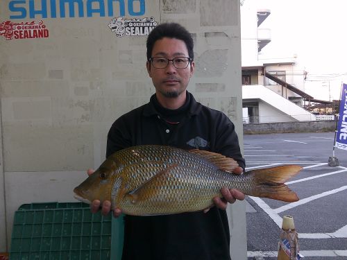 名前:山入端 強(TNFC)さん 魚種:ミナミクロダイ 全長:42.5p 重量:1.3s 釣場:安謝(那覇店検量) |