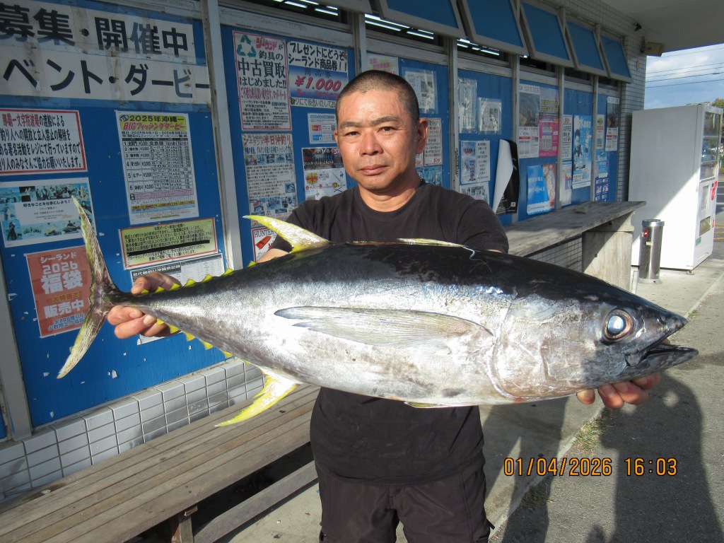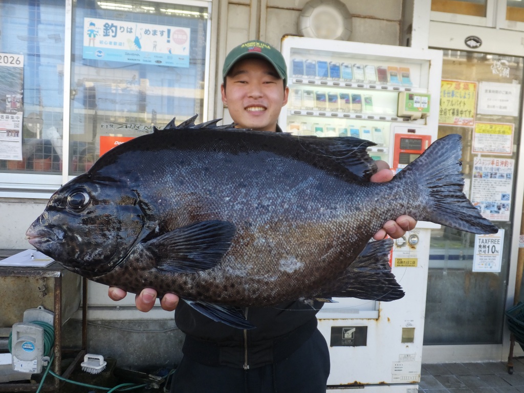 名前:小橋川 喜暉さん魚種:南黒鯛 全長:46p 重量:1.63s 釣場 :名護漁港 検量店:名護店 |