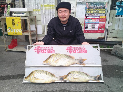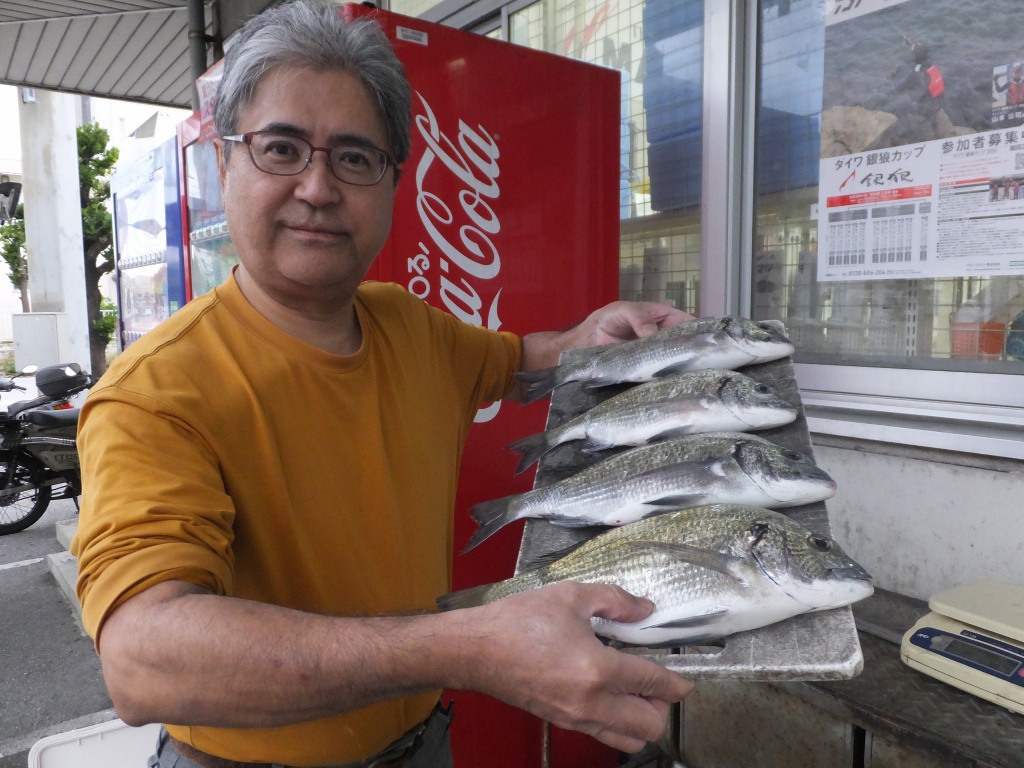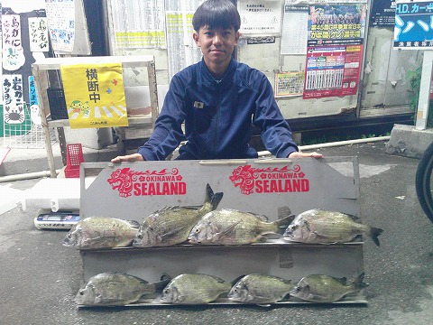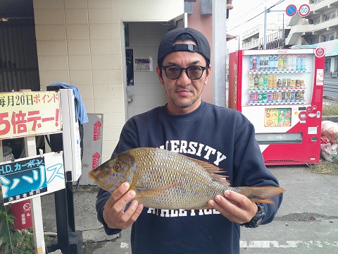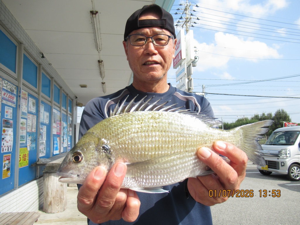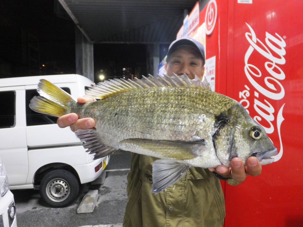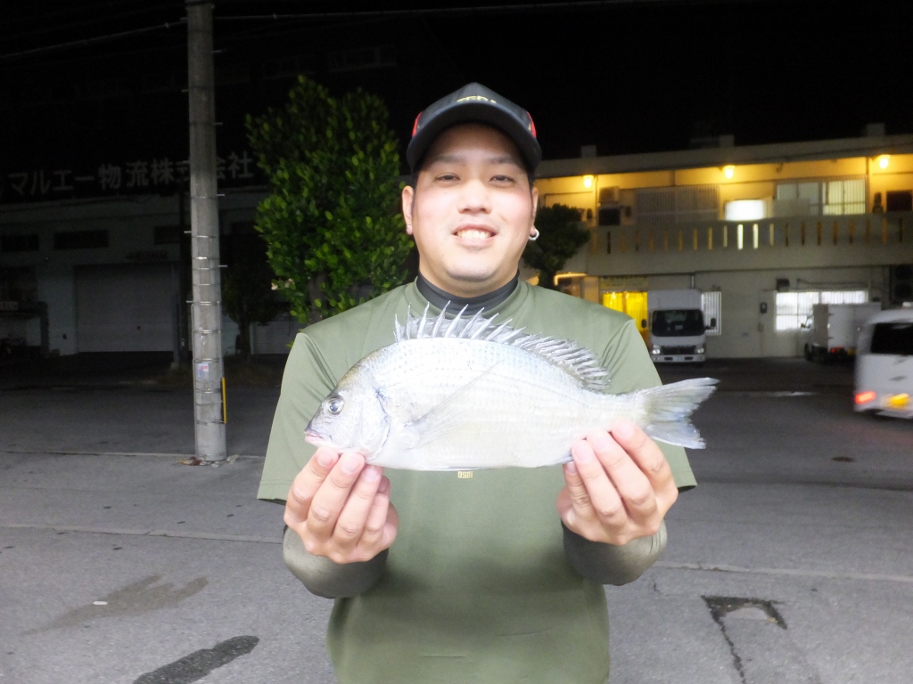 名前:仲宗根 耀太さん魚種:ミナミクロダイ 全長:39.5p 重量:1.0s 他数釣り 釣場:国場川 検量店:南風原店 |