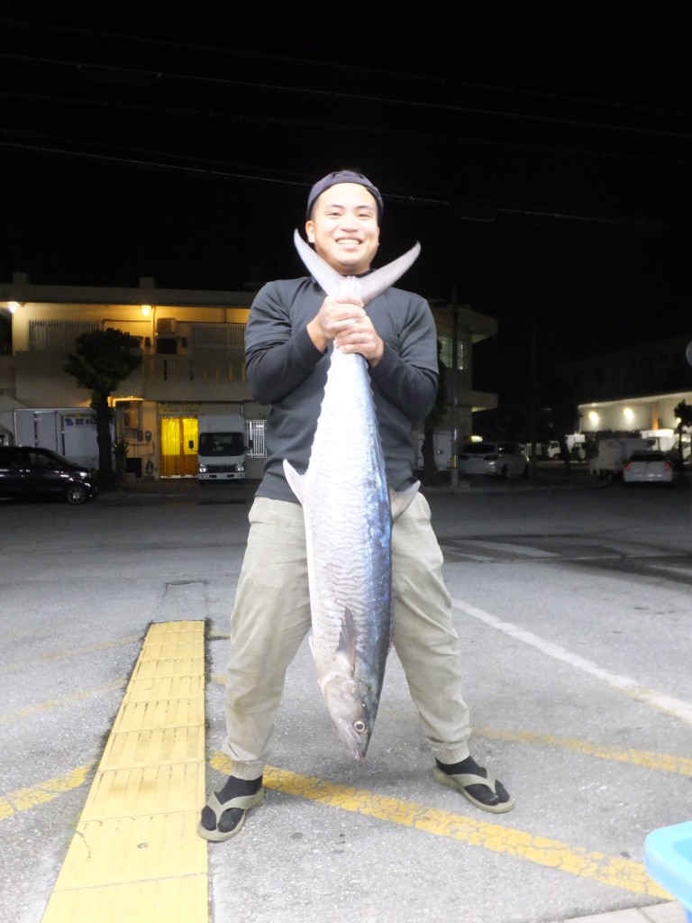 名前:佐藤 項羽さん 魚種:サワラ 全長:114p 重量:9.75s 釣場:安謝(那覇店検量) |