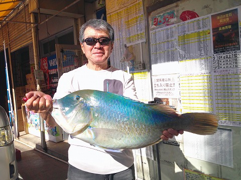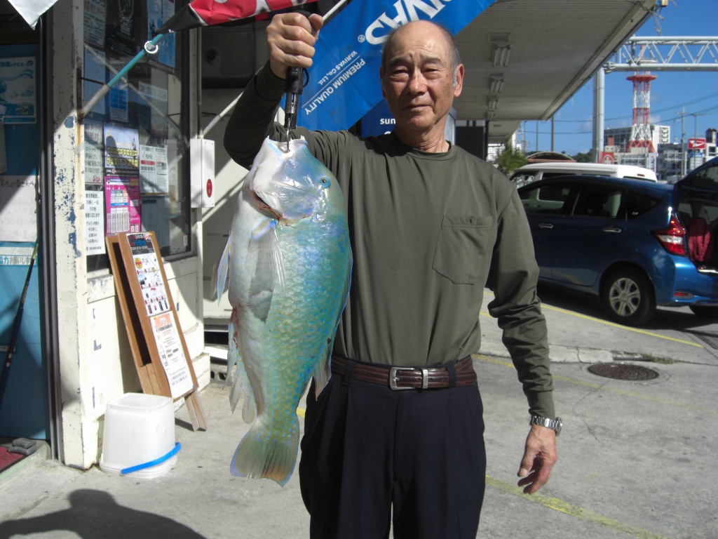 名前:宮里 毅 さん(銀礁会)魚種:カーエー 全長:40.5cm 重量:1.25kg その他数釣り 釣場:本部 検量店:宜野湾店 |