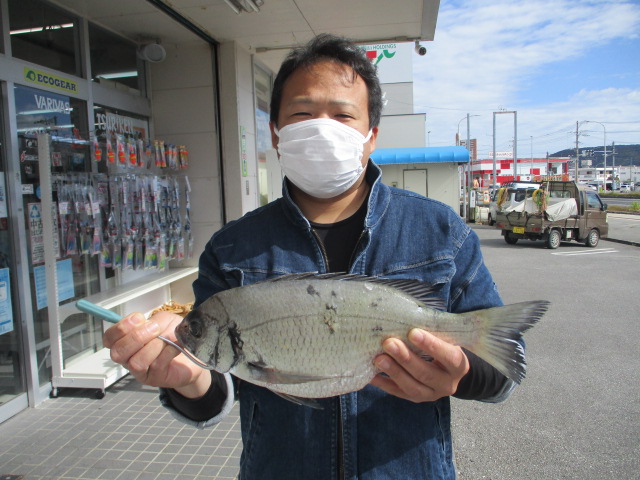 名前:崎山 喜登(名護店スタッフ)魚種:ミナミクロダイ 重量:2.1s 釣場 :本部(名護店検量) |