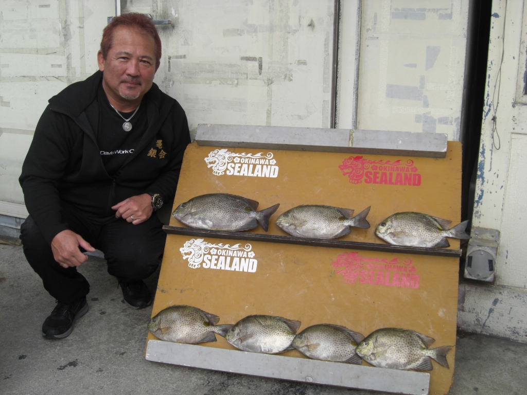 名前:後原 優二さん 魚種:イスズミ トカジャー 全長:50p 51.8p 46.2p 重量:1.96s 1.69s 1.44s 釣場:伊是名(那覇店検量) |