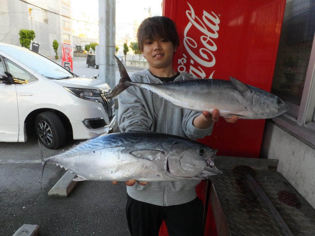 名前:豊崎 琉成さん 魚種:スマガツオ 全長:54p 66.5p 重量:1.74s 3.26s 釣場:知念海岸(那覇店検量) |