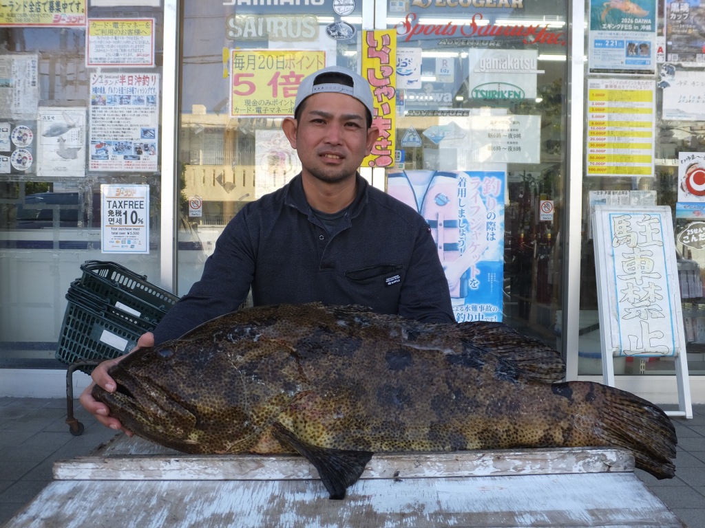 名前:新垣 泰吾さん 魚種:アーラミーバイ 全長:125p 重量:34s 釣場:国頭海岸(那覇店検量) |
