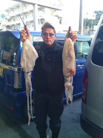 名前:仲里 直政さん 魚種:アオリイカ 重量:1s 1.4s 釣場:安謝(那覇店検量) |