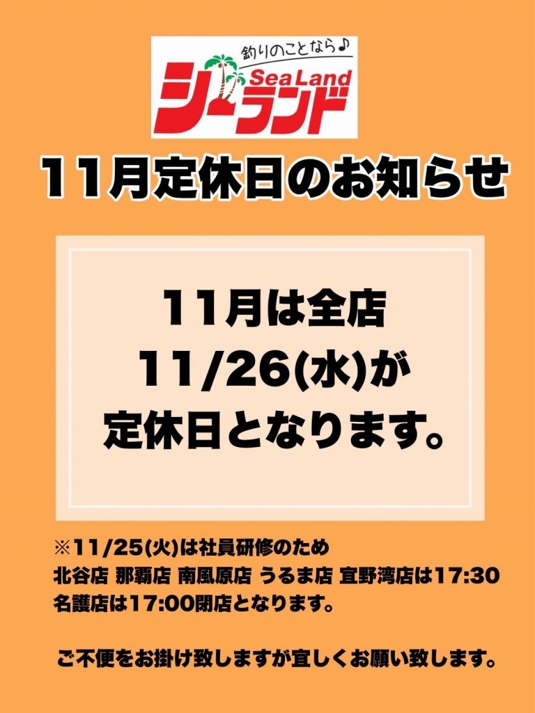 11月は全店11/26(水)が定休日となります。