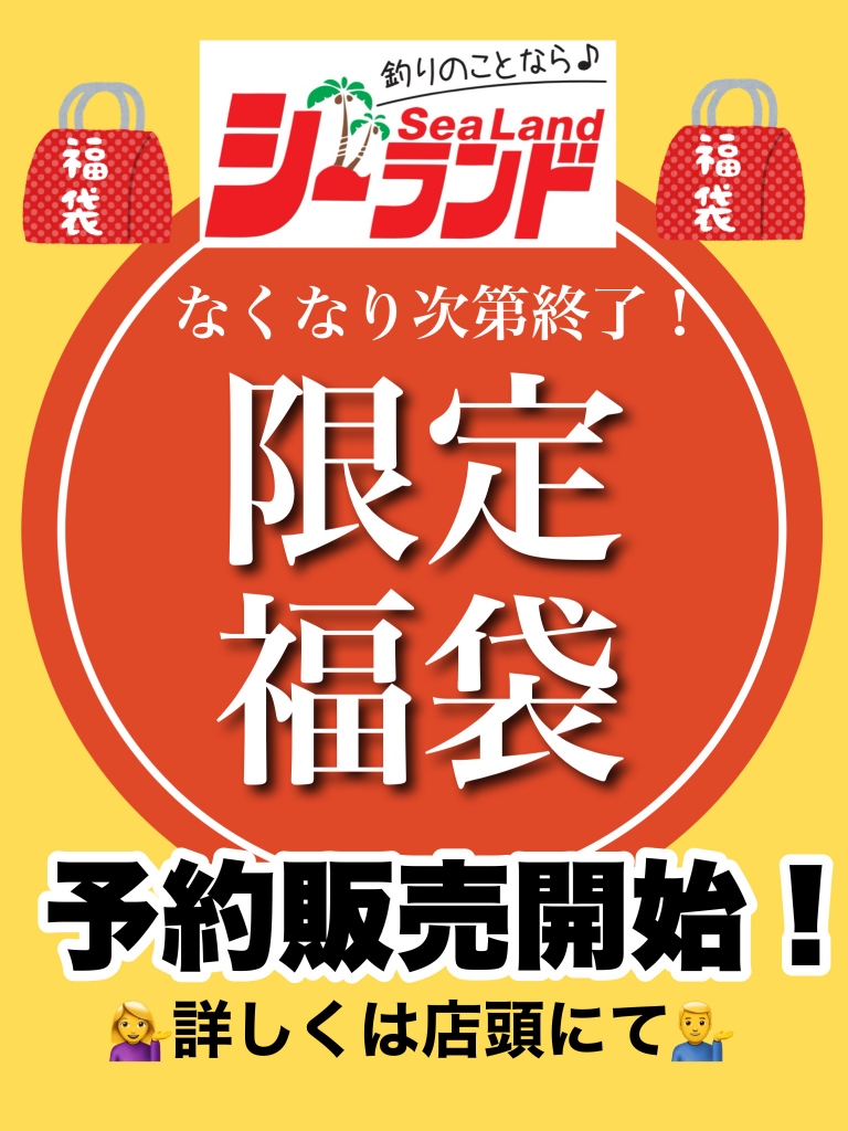 こんにちはシーランドです! 12/21の福袋販売開始に先駆けまして 本日12/8(月)よりシーランド“限定福袋”予約販売開始です!