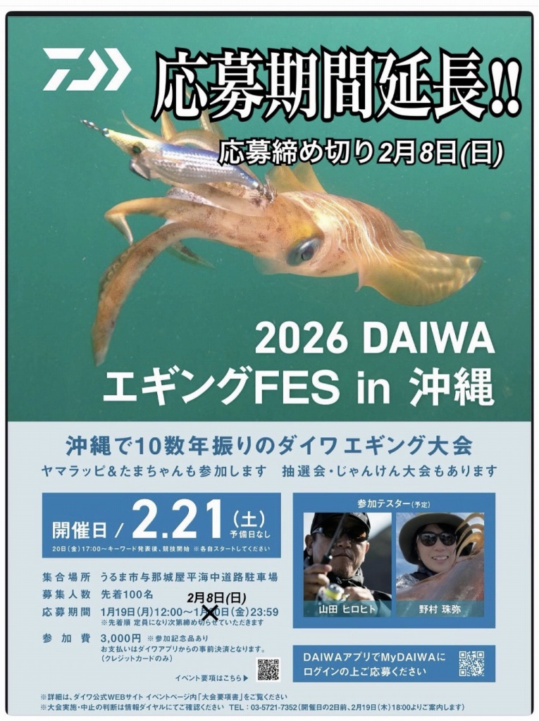 ●2026 DAIWAエギングFES in 沖縄 参加締め切り2/8まで!