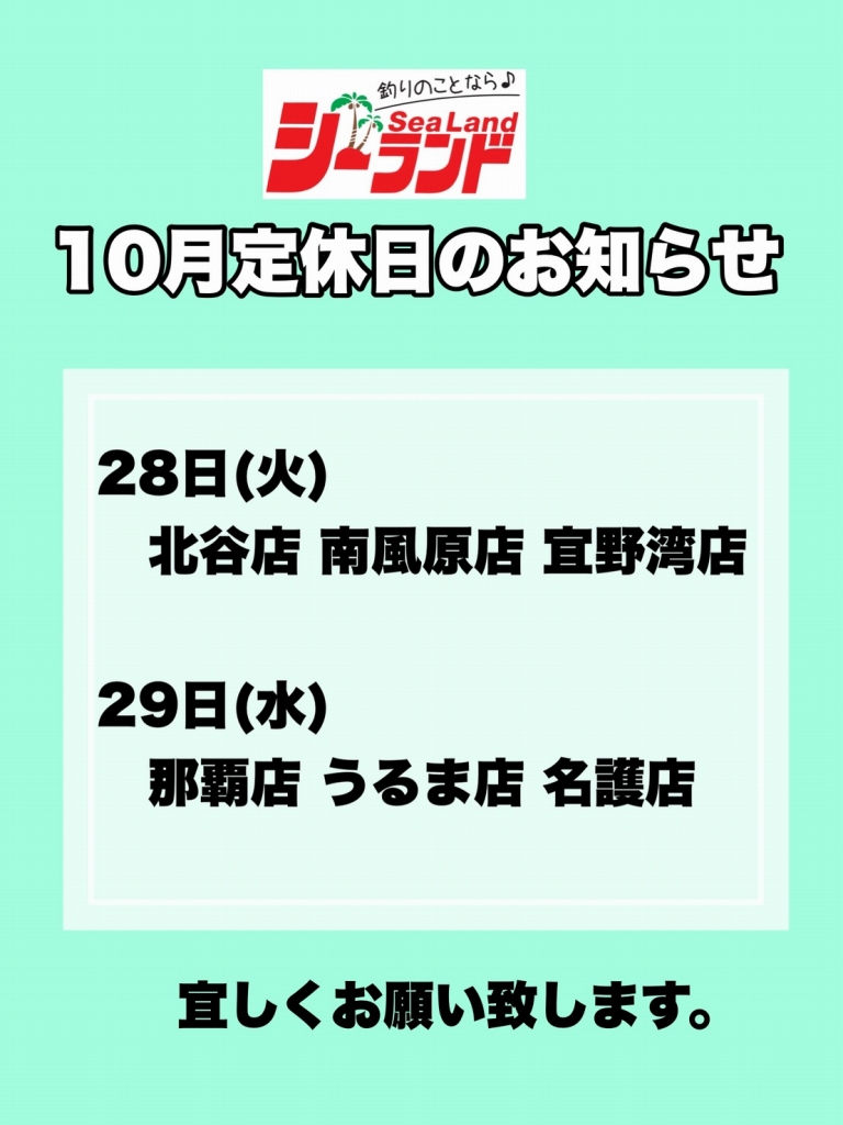 ●10月定休日のお知らせ